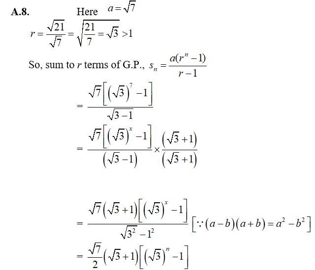 | A.18. The given sequence, 8, 88, 888, 8888, …., upto xterm is not a G.P. so we can such that it will be changed to a G.P. by the following . Sum of x terms, sx = 8+ 88+888+8888 …..upto x term =