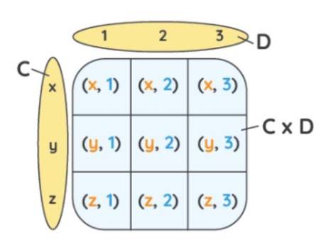 The cartesian product, also known as the cross-product or the product set of C and D is obtained by following the below-mentioned steps:
