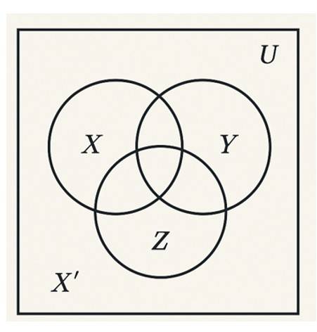 Consider U as the universal set and , and Z as any three finite sets. The key properties include: