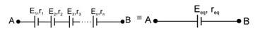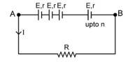 Each cell has its own open-circuit voltage (EMF) 𝐸. When cell are put in series combination, the total EMF is the sum: