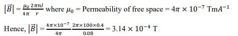 Q: A circular coil of wire consisting of 100 turns, each of radius 8.0 cm carries a current of 0.40 A. What is the magnitude of the magnetic field B at the centre of the coil?