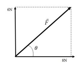 Given, the mass m = 5 kg The resultant force F of the two forces 6N and 8N is given by, F = √82 +62 = 10 N Acceleration is given by F = ma, a = F/m = 10/5 m/s2 = 2 m/s2 tanθ = 6/8, θ = 36.86°
