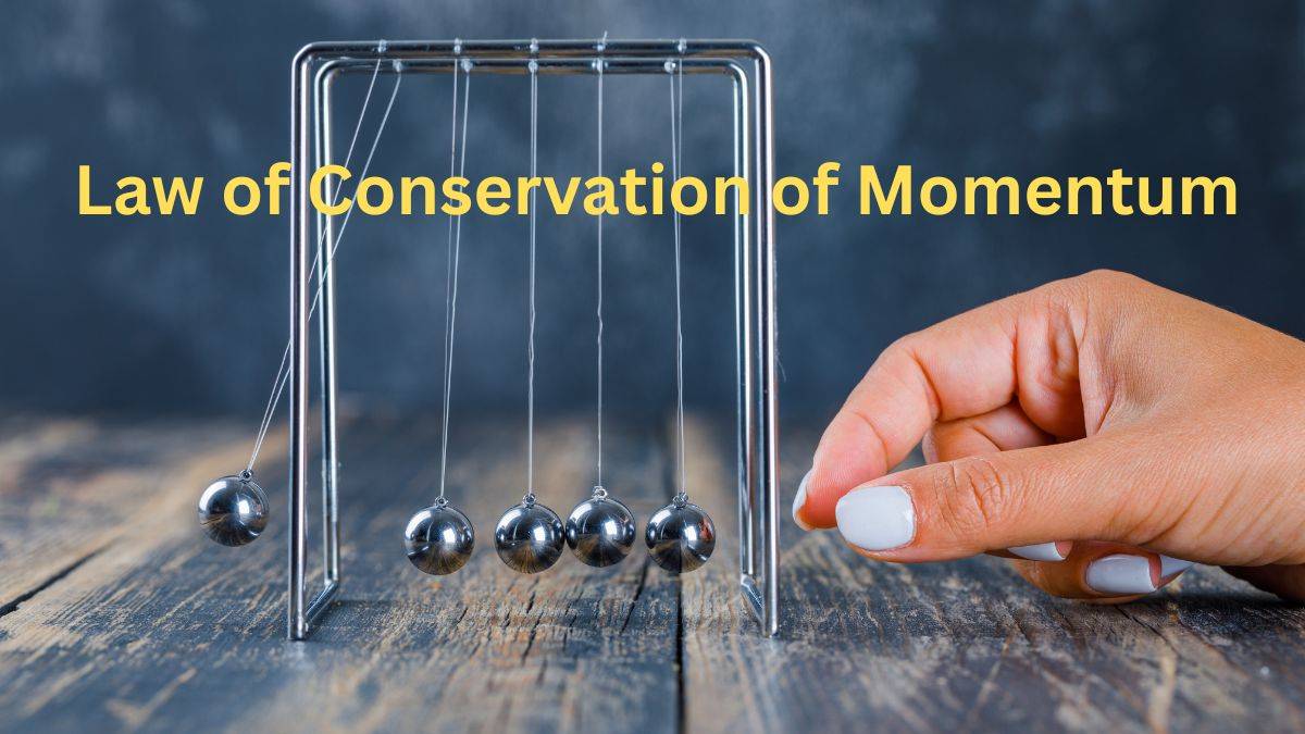 The law of conservation of momentum states that the total momentum of a system remains constant if no external force acts on the system. For example, when two balls collide, the momentum of the balls before and after the collision is the same.