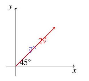 Diagram Description: The diagram shows (blue) at with components . The scaled vector (red) is twice as long, maintaining the same direction.