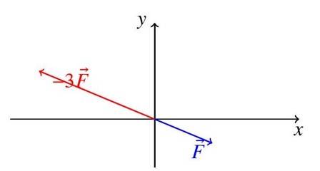 Diagram Description: The diagram shows (blue) in the fourth quadrant. The scaled vector (red) is three times longer and reversed, lying in the second quadrant.