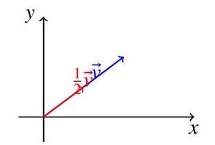 Diagram Description: The diagram shows (blue) with components . The scaled vector (red) is half as long, maintaining the same direction.