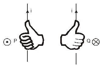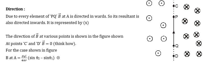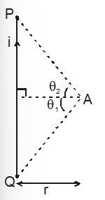 Due to a straight wire ‘PQ’ carrying a current ‘i’ the at A is given by the formula