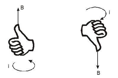 Direction of : The direction of the magnetic field at the centre of a circular wire can be obtained using the right-hand thumb rule. If the fingers are curled along the current, the stretched thumb will point towards the magnetic field (figure).