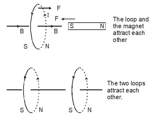 The side ‘I’ (the side from which the enters) acts as the ‘SOUTH POLE’. It can be verified by studying the force on one loop due to a magnet or another loop.