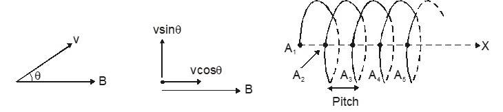 Now, in case, the charged particle moves in the magnetic field along with an angle, its motion will be along or across the field line. Due to these two motions, the particle will move in a spiral shape.