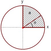 The disc of mass M with uniform surface mass density σ is shown in the figure. The centre of mass of the quarter disc (the shaded area) is at the position (xa/3π, xa/3π) where x is---------. (Round off to the Nearest integer) [a is an area as shown in the figure]