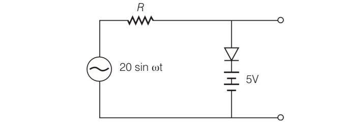 4. Assuming the ideal diode, draw the output waveform for the circuit given in figure, explain the waveform. |