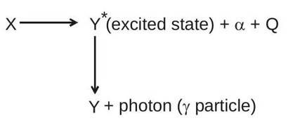 Radioactivity was discovered by Antoine Henri Becquerel. In simple terms, the spontaneous emission of radiations ( ) from unstable nucleus is called radioactivity. Substances that have radioactivity are known as radioactive substance. Radioactivity was studied in detail by Rutherford. In the radioactive decay, unstable nucleus emits particle or particle. After emission of or the remaining nucleus may emit - particle, and converts into more stable nucleus.