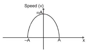 - Graph of Speed (v) vs Displacement (x) in Simple Harmonic Motion