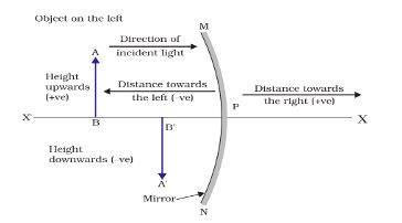 Let us assume that the object AB is at the distance of U from P, the pole of the mirror. And we can assume that the A1B1 points are formed at V from the mirror.