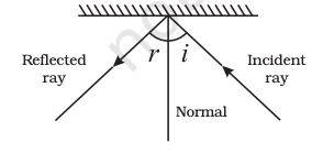 The fundamental concept to understand here is that when a ray/beam of light falls on a smooth surface, at that given time, the angle of reflection, i.e., θr, and the angle of incidence, i.e., θi are equal. One more important point is that the reflected ray and incident ray are normal to the surface and notably lie in the same plane.