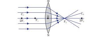 Answer - The illustration of the converging action of a convex lens is shown below:
