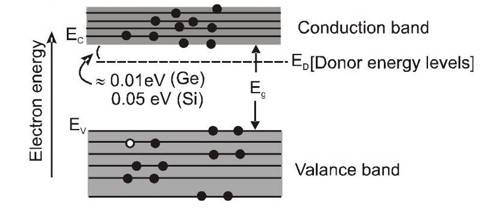 (4) Donor energy level lies just below the conduction band.