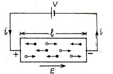 A potential difference applied across the ends of the semiconductor creates an electric field given by :