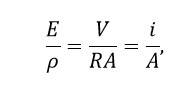 Because (Ohm's law). Substituting in it the value of i/A from eq.(ii), we get