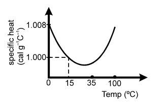 (d) The slight variation of the specific heat of water with temperature is shown in the graph at 1 atmosphere pressure. The variation in specific heat is less than over the interval from 0 to .