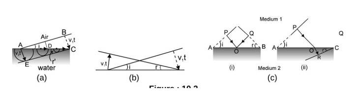 Figure (10.2a) shows an incident wavefront. It makes an angle ' ' with the surface that splits between water and air.