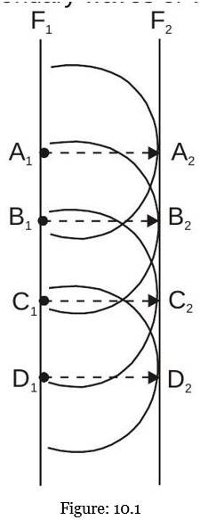 Huygens' principle is illustrated in (Figure : 10.1) in the simple case of a plane wave.