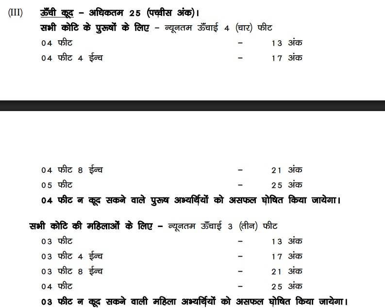 उम्मीदवार लंबी कूद के लिए बिहार कांस्टेबल पैटर्न नीचे देख सकते हैं: