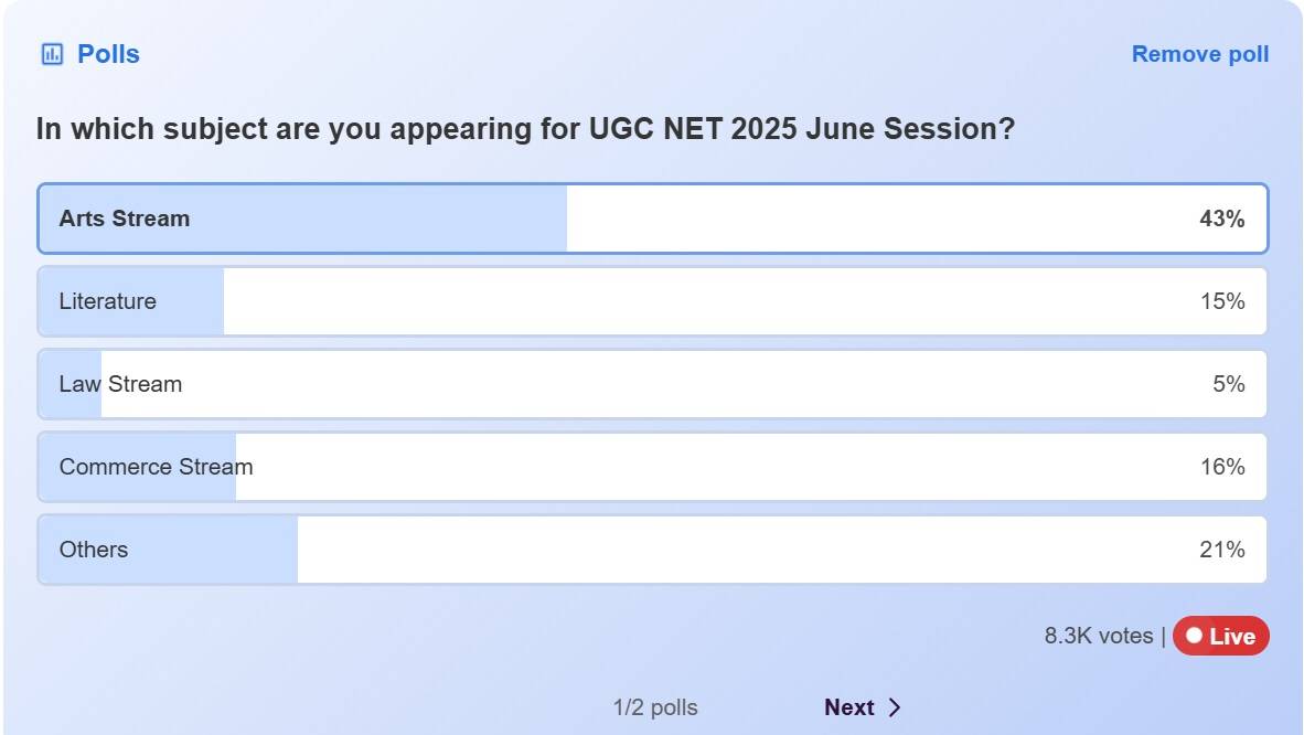 - UGC NET 2025 June: 43 Percent Candidates Chose Art Stream Shiksha Polls: Detailed Overview