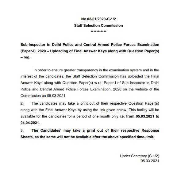 SSC CPO 2020 final answer key and question papers have been released on March 6. To download the answer key and question papers, candidates need to enter roll number and password.