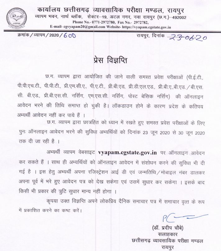 The admit card of CG PAT 2020 will be issued to candidates only after they have correct their details in the application form, and CPEB confirms the new exam date. Candidates can also update their exam centre preferences for CG PAT 2020 through the correction window until June 30.