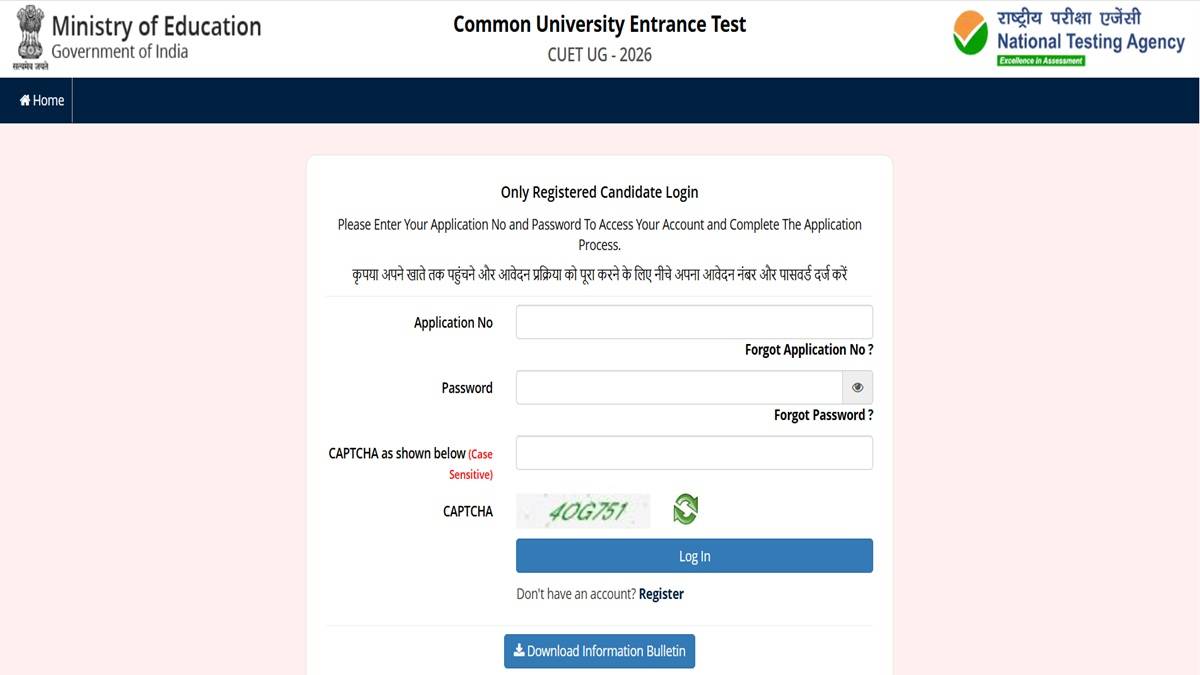 NTA has opened CUET UG login 2026 window at cuet.nta.nic.in. Students can access the registration form, correction window, intimation slip, hall ticket, provisional/final answer key and scorecard through the CUET UG 2026 login. CUET application fee 2026 payment window is open till February 07.