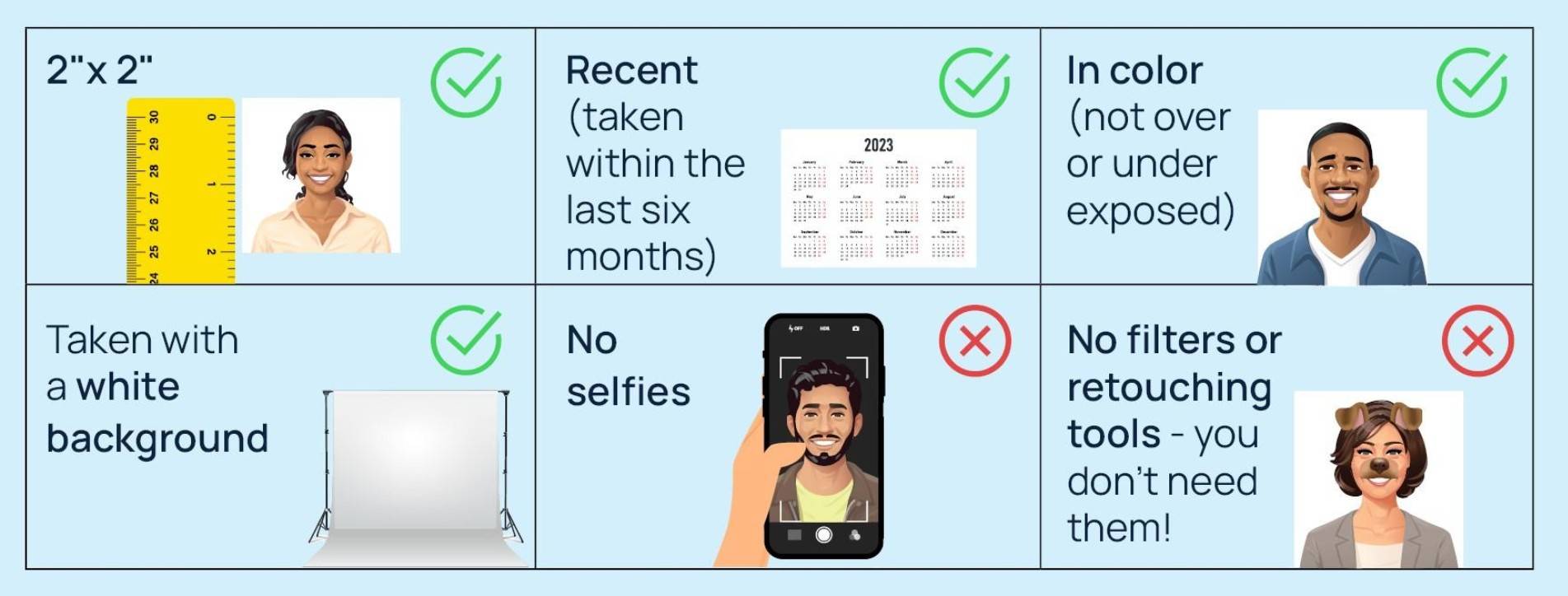 - Candidates should not be wearing sunglasses, caps, mufflers, earmuffs, headphones, etc., while getting the photograph clicked