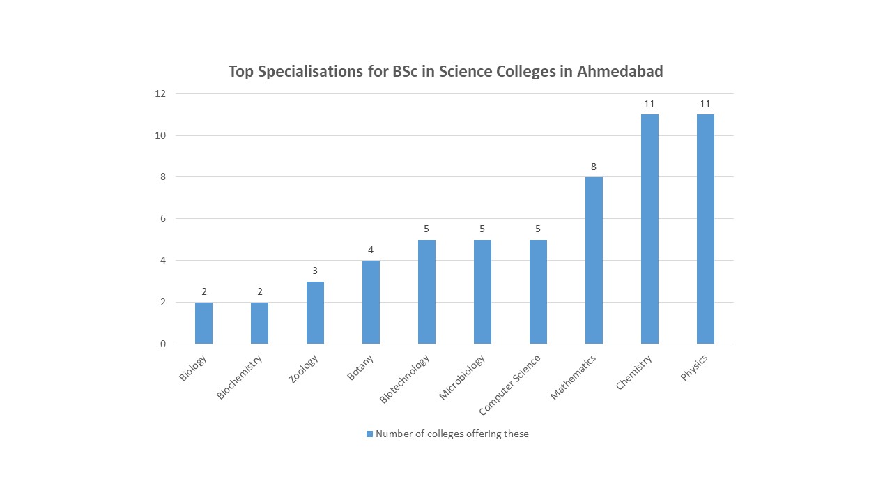 There are approximately 30 colleges/universities across the city of Ahmedabad that offer full-time BSc programme.
