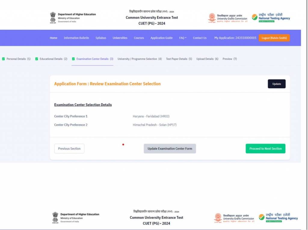 On sucessful registration, Candidates must enter the following details to complete the CUET PG application form: