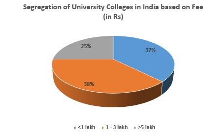 Refer to the infographic below to get a detailed overview of the break-up of University colleges in India based on fee: