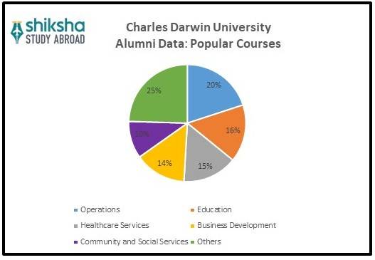 Charles Darwin University Melbourne offers a range of Bachelors, Masters, and Doctoral programs for international students. Some of the top courses offered at the university are given in the pie chart below:
