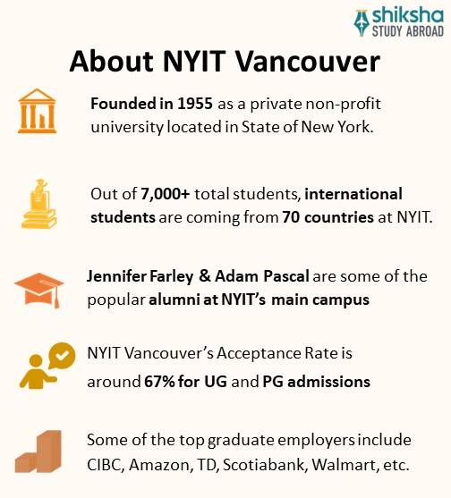 - Some of the top alumni organizations at NYIT Vancouver campus include CIBC, Fortine, Amazon, RBC, Provincial Health Services Authority, Scotiabank, Walmart, NTT Data, etc.