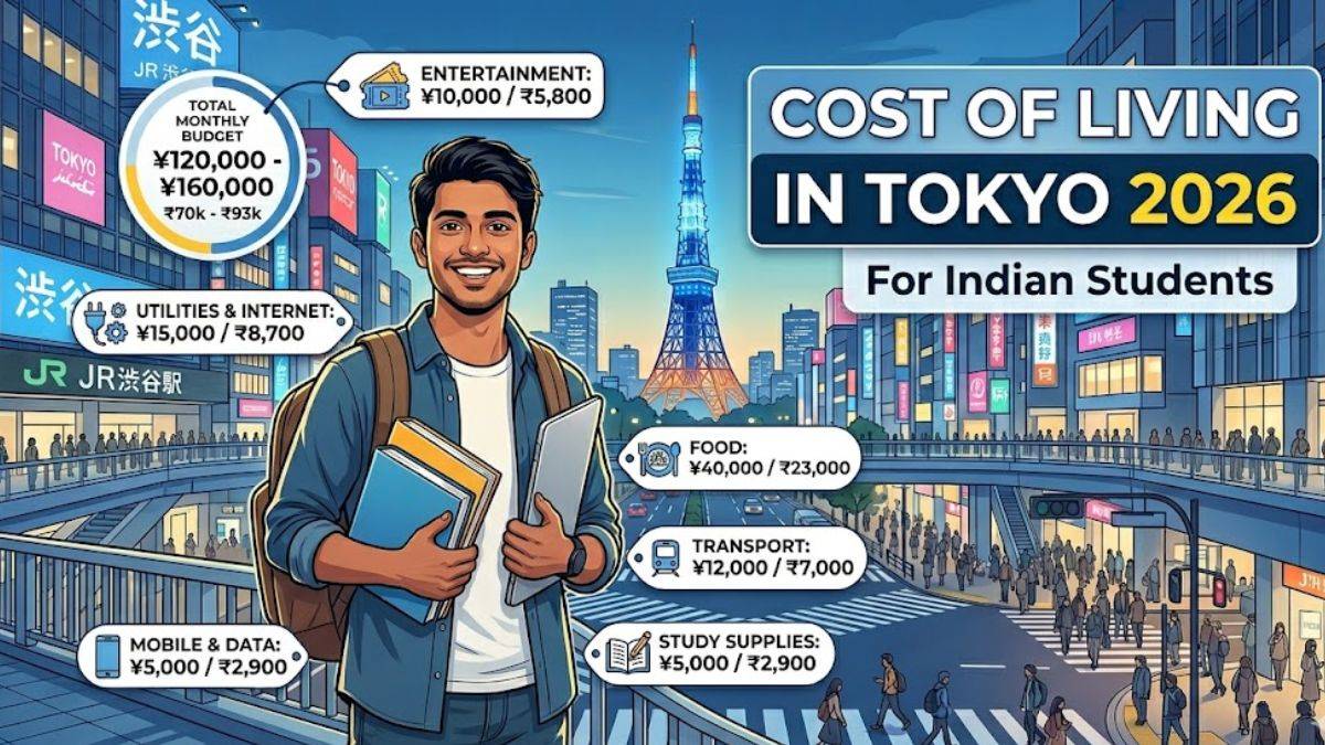 For 2026, Indian students need about JPY 1.20 lakh to 1.50 lakh per month (INR 69,000 to INR 87,000).