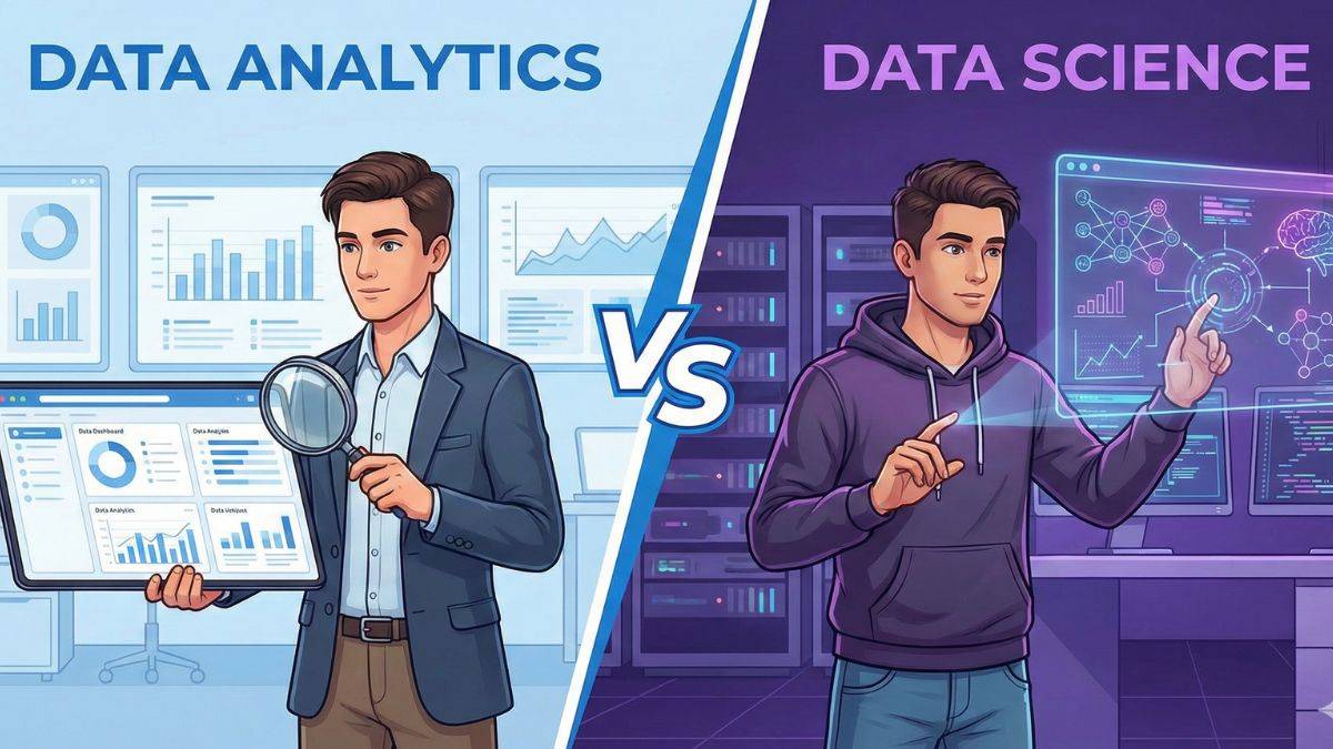 Think of it this way: Data Science is the whole house, and Data Analytics is just one room inside it. The simplest difference is the kind of question they try to answer: