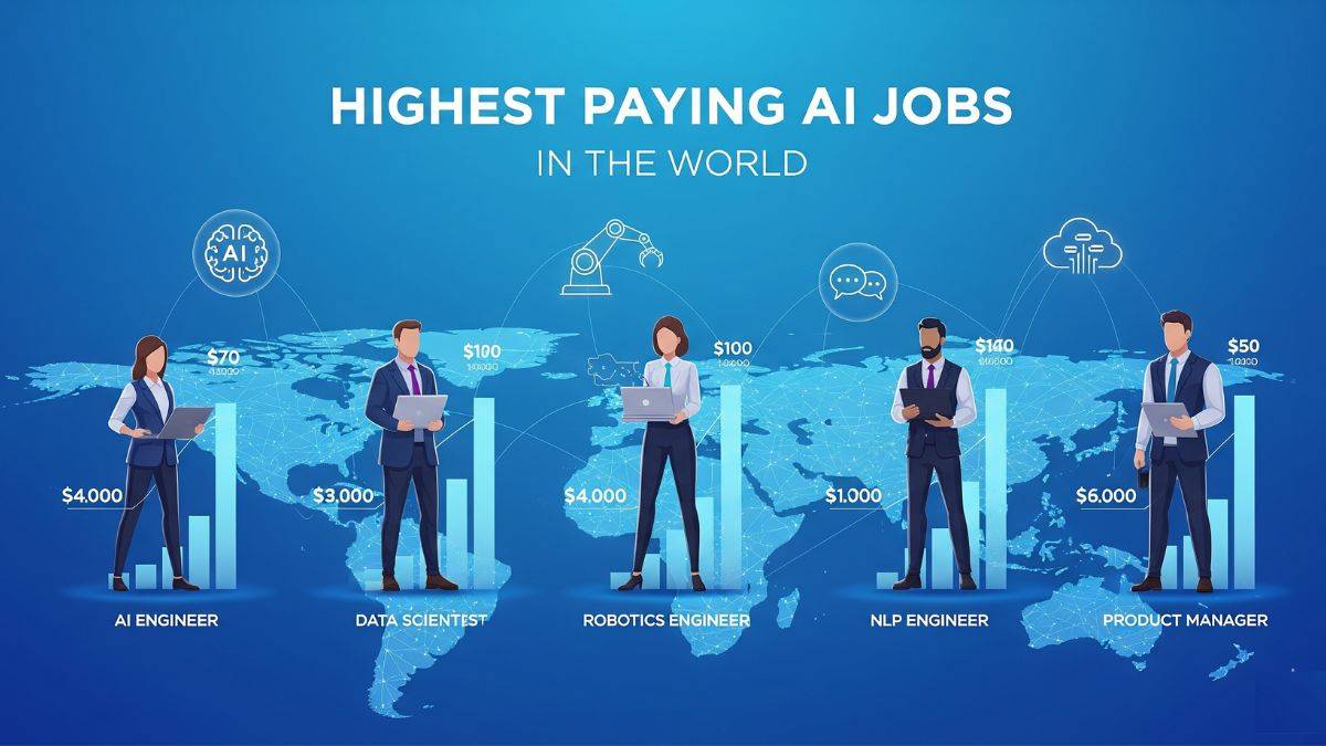 The highest paying AI jobs are AI Research Scientist, Machine Learning Engineer, AI Product Manager, Computer Vision Engineer, NLP Engineer, Generative AI Engineer, Robotics Engineer, and AI Solutions Architect.
