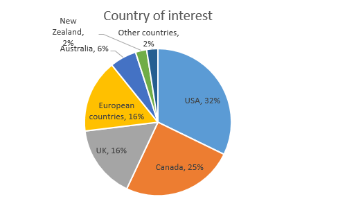 In terms of the destination country of interest, we have a good distribution of all major countries.