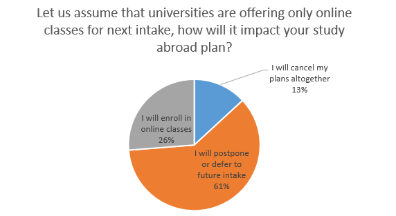 A majority of students (61%) have suggested they will defer to future intake while 26% have indicated their willingness to enroll in online classes.