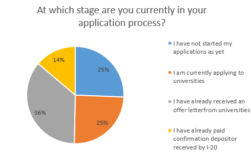 - 50% are at an advanced stage of their applications i.e. they have received their offer letter or already paid for the deposit or received their I-20