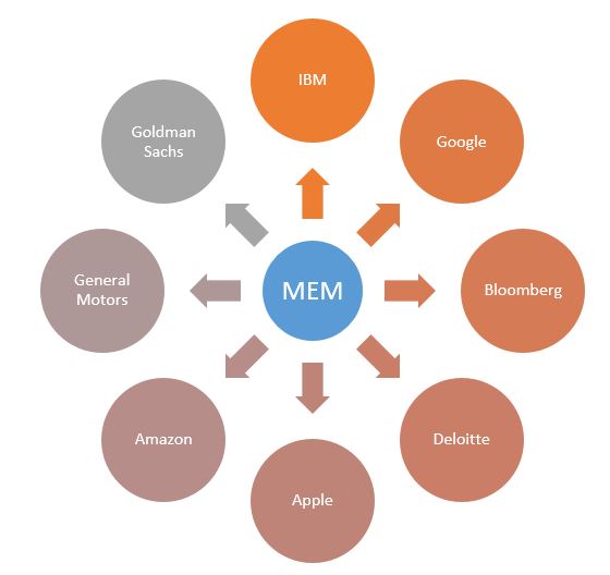 Top companies hiring MEM graduates around the world include IBM, Google, Bloomberg, Deloitte, Apple, Amazon, General Motors, Goldman Sachs, among several others. Transition to senior management and leadership roles among MEM graduates is often quick because of their in-depth skills in engineering & management.