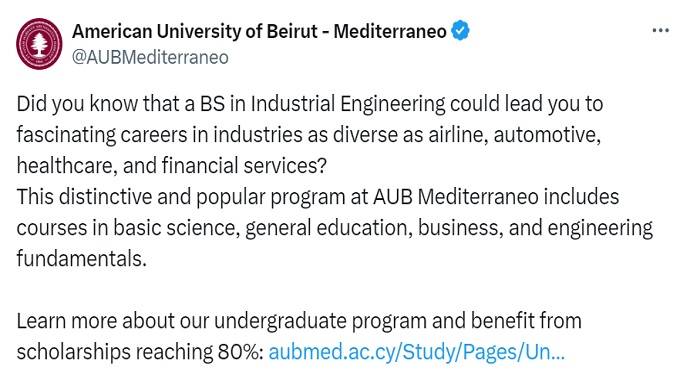 American University of Beirut - Mediterraneo: Admissions open for BS in Industrial Engineering