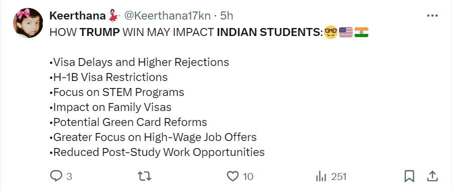 While reacting to its impact on Indian students, a message on X reads, "HOW TRUMP WIN MAY IMPACT INDIAN STUDENTS: