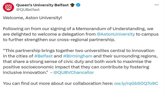 Queen’s University Belfast, Aston University enters partnership