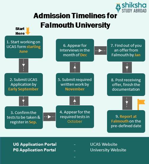 Falmouth University accepts international admissions during September and January intakes every year. Students can apply through UCAS for undergraduate and postgraduate courses and submit the application by the given deadlines.