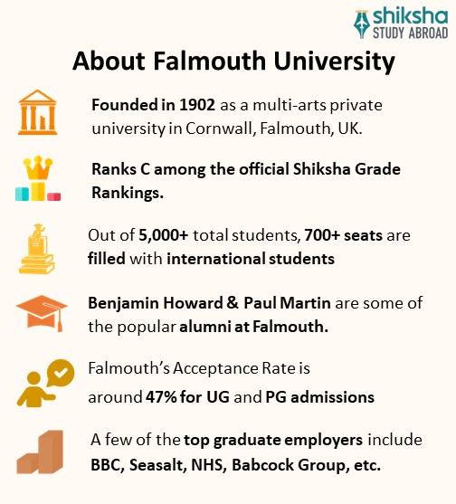 - Some of the top alumni organizations at Falmouth University include BBC, Seasalt, Cornwall Council, NHS, Babcock International Group, VML, Accenture, etc.